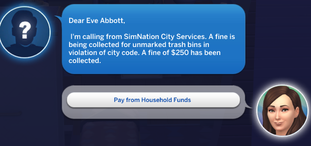 Each financial event will cost your sim an amount from a small fine of maybe $250 to fairly substantial and varied amounts of simoleons up to $25,000.